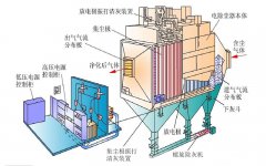 板臥式框架結(jié)構(gòu)的電除塵器,其流通面積200m2三個(gè)電場雙室結(jié)構(gòu)。